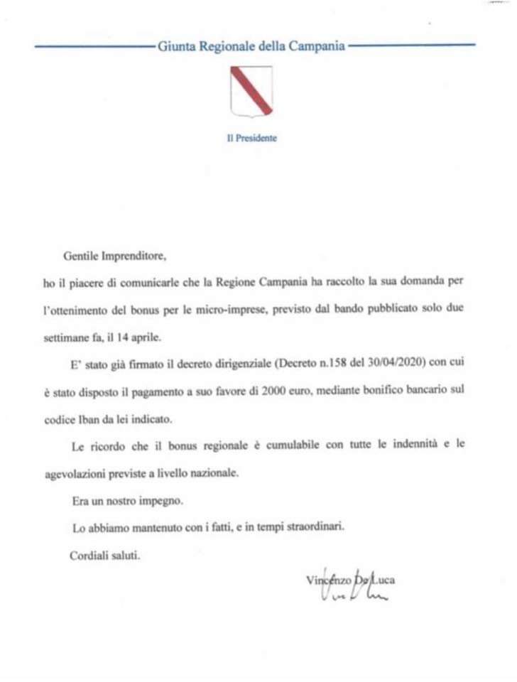Coronavirus, Fapi a De Luca: “Felicitazione è riapertura non bonus”